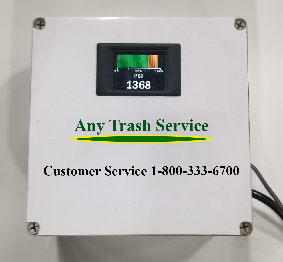 This ready-to-plug-in Trash Compactor Fullness Monitor can also be used to set an alarm or send an email message, as well as trigger a circuit cut-off. By using an electronic pressure transducer a cable can be run to the power unit. This allows the monitor to be mounted anywhere you desire.